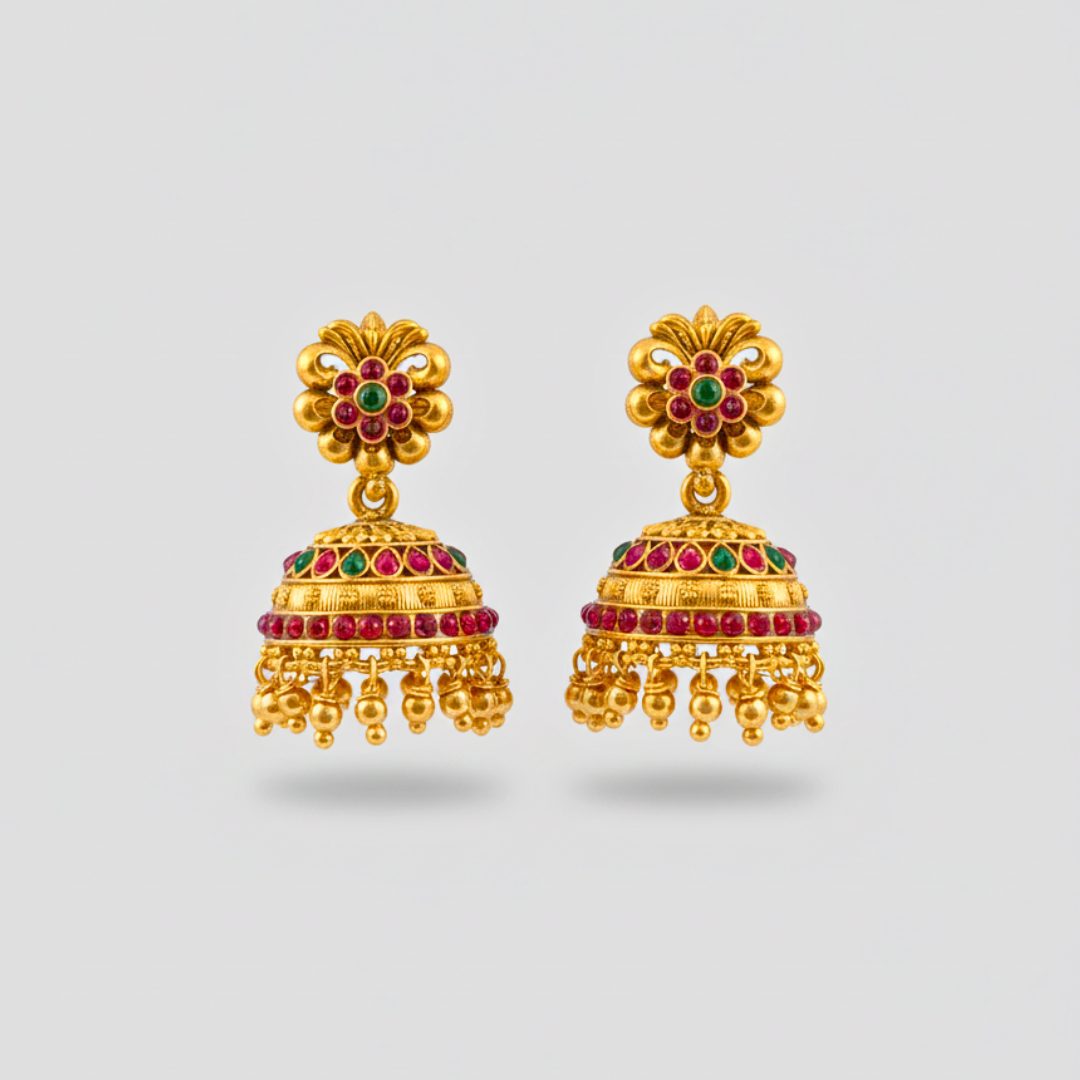 Kemp Jhumka Earrings – Traditional Gold Finish Copper Design