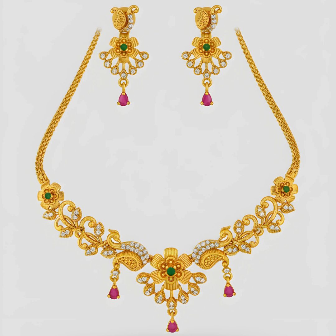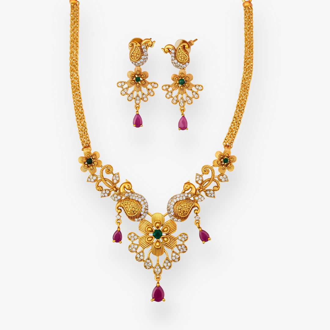 The choker’s 10.5-inch length ensures a comfortable yet statement fit, while the matching earrings complete the ensemble with graceful balance. Designed to complement sarees, lehengas, and festive attire, this set makes a perfect choice for weddings, cultural celebrations, or gifting.