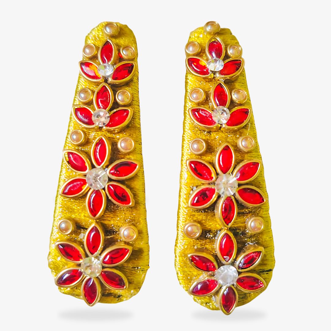 Elevate your hairstyle with the Golden Ruby Silk Thread Clips ( Silk Thread Tictac Clips ) – a handcrafted accessory that blends tradition with elegance.